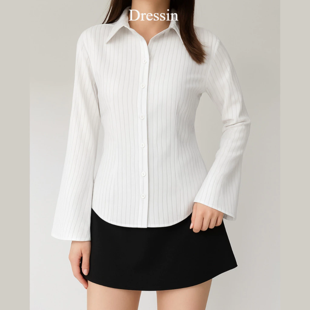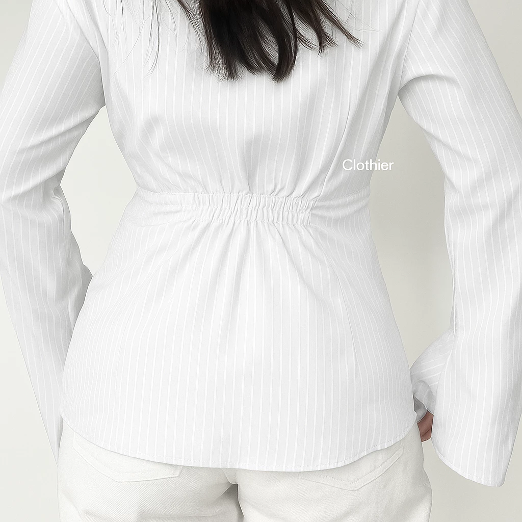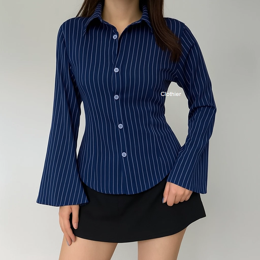Upgrade gaya harianmu dengan kemeja stripe premium yang memberi kesan ramping dan jenjang